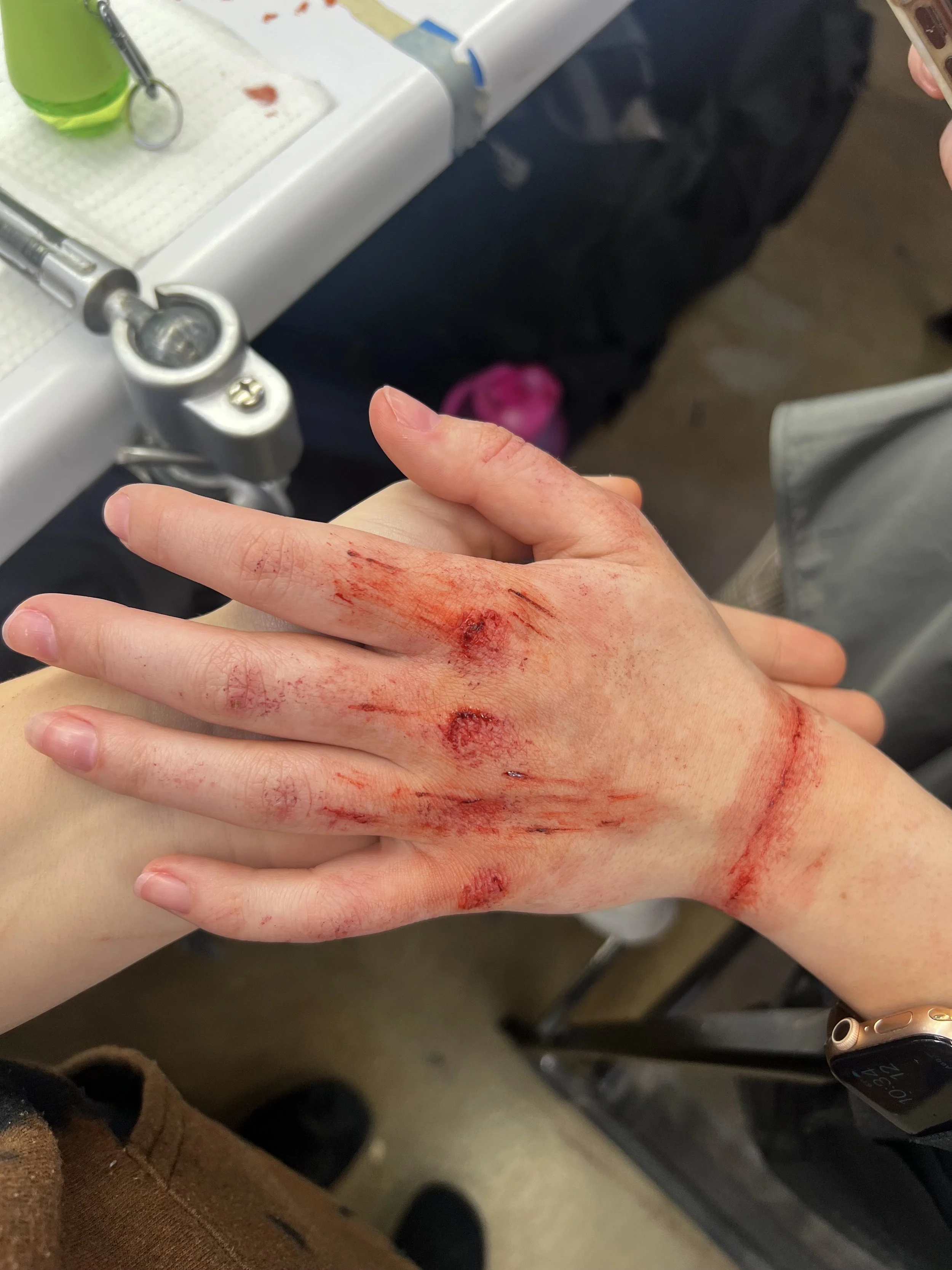 Special Effects Makeup: Injuries (burns, bruises, cuts, scrapes) Custom Prosthetics, Aging, Laying Hair(beard/mustache) Character Design, Bald Cap Application